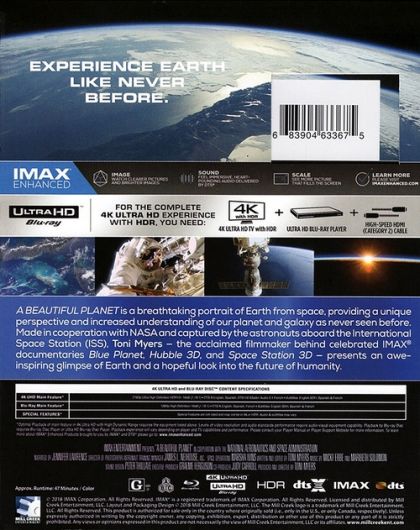 A breathtaking portrait of Earth from space, providing a unique perspective and increased understanding of our planet and galaxy as never seen before. Made in cooperation with the National Aeronautics and Space Administration (NASA), the film features stunning footage of our magnificent blue planet — and the effects humanity has had on it over time — captured by the astronauts aboard the International Space Station (ISS).