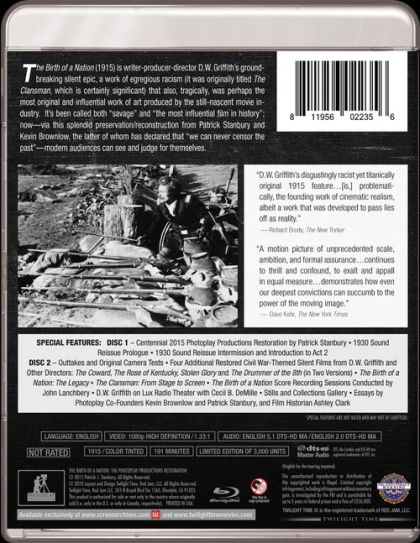 | Writer | Thomas Dixon Jr., D.W. Griffith, Frank E. Woods, Woodrow Wilson, John M. Hay, John G. Nicolay | |