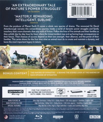 Follow the true stories of five of the world's most celebrated, yet endangered animals; penguins, chimpanzees, lions, painted wolves and tigers. Each in a heroic struggle against rivals and against the forces of nature, these families fight for their own survival and for the future of their dynasties.