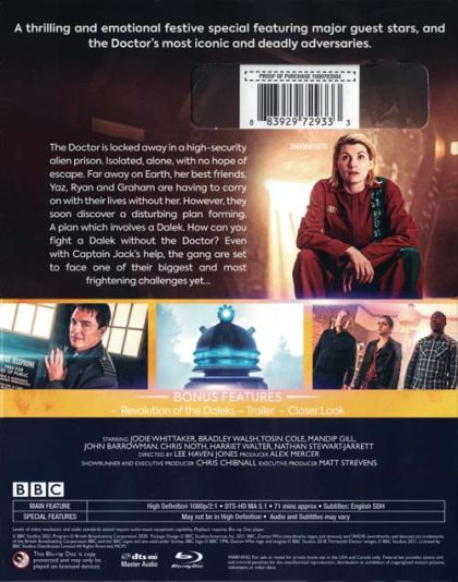The Doctor is locked away in a high-security alien prison with no hope of escape. Her best friends, Yaz, Ryan and Graham, have to pick up their lives without her. However, old habits die hard when they discover a disturbing plan involving the Daleks.