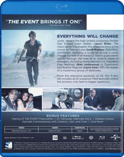 The Event is an emotional, high-octane conspiracy thriller that follows Sean Walker, an everyman who investigates the mysterious disappearance of his would-be fiancée Leila, and unwittingly begins to expose the biggest cover-up in U.S. history.
