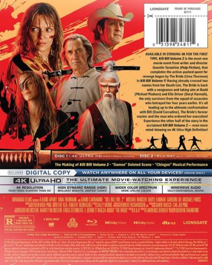 The Bride unwaveringly continues on her roaring rampage of revenge against the band of assassins who had tried to kill her and her unborn child. She visits each of her former associates one-by-one, checking off the victims on her Death List Five until there's nothing left to do … but kill Bill.