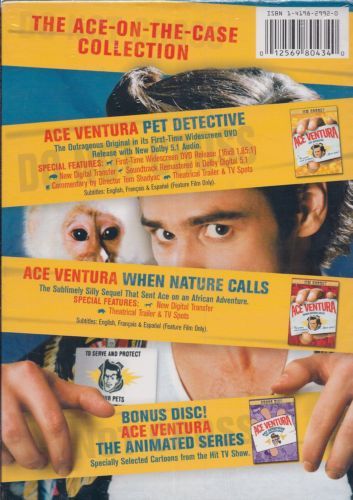 Double bill of comedies starring Jim Carrey. In 'Ace Ventura: Pet Detective' (1994) the eccentric investigator Ace Ventura (Carrey) is hired by the beautiful Melissa (Courteney Cox), a board member of the Miami Dolphins, to discover the whereabouts of the team's missing mascot, a dolphin called Snowflake. With only a week to go before the Super Bowl, Ace's investigations lead him to suspect an ex-Dolphins player of kidnapping the prized animal. In 'Ace Ventura: When Nature Calls' (1995) Ace is summoned from his retreat in the Himalayas by British consul General Vincent Cadby (Simon Callow) to find the stolen sacred bat of the Wachati tribe. If the bat is not recovered in time for the imminent wedding of the Wachati chief's daughter and the chosen warrior of the neighbouring Wachootoo tribe, war will break out between the two tribes...
