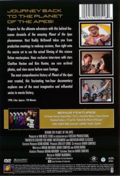 Roddy McDowall takes you, film by film, from production meetings to make-up sessions, then right onto the movie set to see the actual filming of the science fiction masterpiece. The most comprehensive history of Planet of the Apes ever created, this fascinating 127-minute documentary explores one of the most imaginative and influential series in movie history.