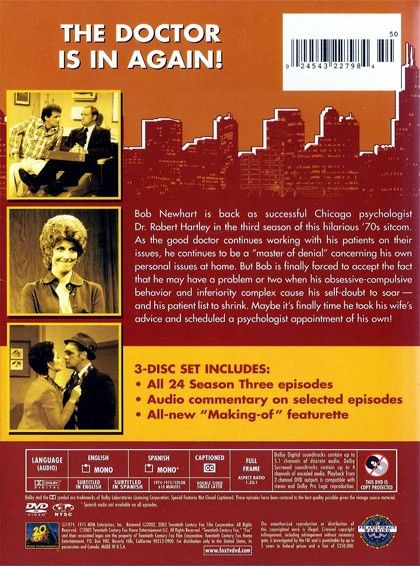 The Bob Newhart Show was part of CBS' highly successful Saturday night lineup which also featured The Mary Tyler Moore Show, The Carol Burnett Show and All in the Family. Another connection to The Mary Tyler Moore Show was that The Bob Newhart Show was produced by the same team that made that series a success. Bob Newhart plays Dr. Robert Hartley, a psychologist living in Chicago with his wife Emily, a schoolteacher. His neighbor, Howard Borden, is a divorced airplane navigator. One of Bob's best friends is Dr. Jerry Robinson, an orthodontist that works on the same floor as Bob. There's also Bob and Jerry's receptionist Carol Kester as well as a long list of patients of Bob's such as Elliot Carlin, Lillian Bakerman, Emil Peterson and Victor Gianelli. First Telecast: September 16, 1972
