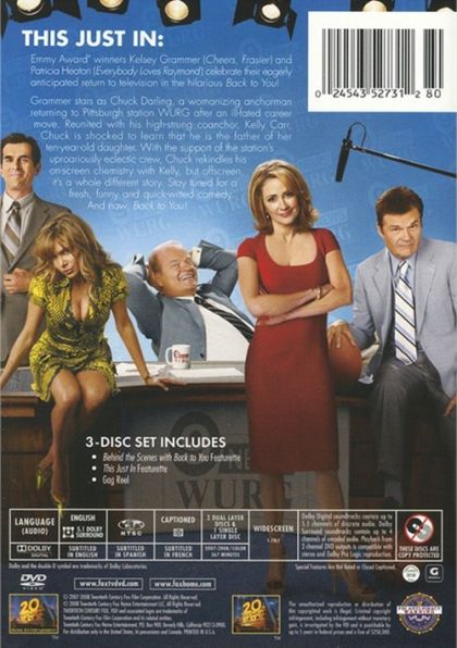 Back to You is a traditional live-audience sitcom starring sitcom veterans Kelsey Grammer and Patricia Heaton as co-news anchors who reunite at a Pittsburgh television station after they worked together previously in the '90s. Chuck Darling is a bit of a womanizer and moved on from Pittsburgh to a large market but his career took a large hit after a terrible on-screen blunder. In the managers' attempt to bring the Pittsburgh newscast back to #1, Chuck Darling makes his return with his former co-anchor Kelly Carr.