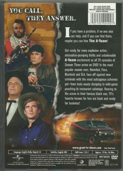 "If you have a problem, if no one else can help, and if you can find them, maybe you can hire: THE A-TEAM." These words open one of the most famous TV series of all time. The A-Team was about 4 escaped fugitives from a crime they did not commit: Col. John "Hannibal" Smith, their heroic leader, in charge of making the plans, Lt. Templeton "Face" Peck, the team's conman and womanizer, Cpt. H.M. "Howlin' Mad" Murdock, an insane pilot who acts as a comedy relief, and Sgt. B.A. Barracus, played by Mr. T in his role of a lifetime. Together, they fight evildoers, escape the military, and create catchphrases in the process. A classic for all ages, The A-Team should be watch by everyone.