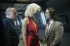 While Commander Adama tries to join Roslin's team on Kobol, Dr. Baltar's Number Six tells him he's crazy.