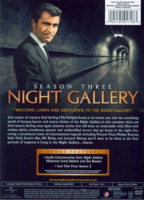 Night Gallery was creator-host Rod Serling's follow-up to The Twilight Zone. Set in a shadowy museum of the outre, Serling weekly unveiled disturbing portraiture as preface to a highly diverse anthology of tales in the fantasy-horror vein. Bolstering Serling's thoughtful original dramas were adaptations of classic genre material--short stories by such luminaries as H. P. Lovecraft, Fritz Leiber, A.E. van Vogt, Algernon Blackwood, Conrad Aiken, Richard Matheson, August Derleth, and Christianna Brand. Variety of material brought with it a variety of tone, from the deadly serious to the tongue-in-cheek, stretching the television anthology concept to its very limits.