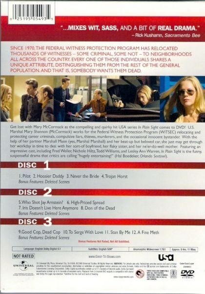 In Plain Sight follows the story of a Federal Marshall with the Witness Protection program who must hide her high-risk, high-impact job from her family. To those that know her, Mary Shannon is a glorified meter maid, but her real job is much more dangerous. She must oversee federal witnesses who have been relocated through the Witness Protection program and make sure that they stay safe....