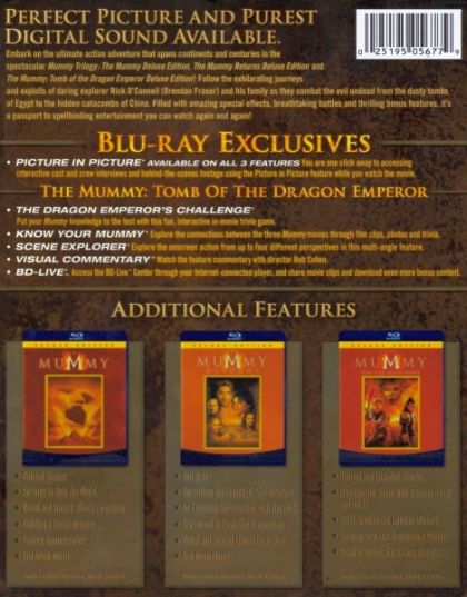 Embark on the ultimate action adventure that spans continents and explores ancient history with The Mummy Ultimate Collection including the films The Mummy, The Mummy Returns, and The Mummy: Tomb of the Dragon Emperor . Follow the exhilarating journeys and exploits of daring explorer Rick O’Connell (Brendan Fraser) and his family as they combat the evil undead from the dusty tombs of ancient Egypt to the hidden catacombs of China. Filled with amazing special effects and breathtaking battles, it’s a passport to spellbinding entertainment you can watch again and again!