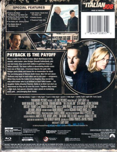 Charlie Croker pulled off the crime of a lifetime. The one thing that he didn't plan on was being double-crossed. Along with a drop-dead gorgeous safecracker, Croker and his team take off to re-steal the loot and end up in a pulse-pounding, pedal-to-the-metal chase that careens up, down, above and below the streets of Los Angeles.