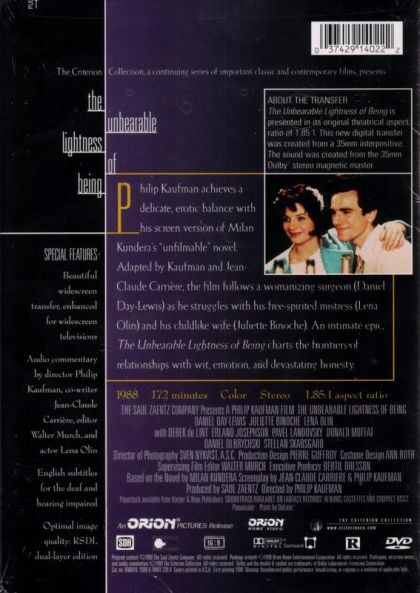 | Writer | Milan Kundera, Jean-Claude Carriere, Philip Kaufman | |