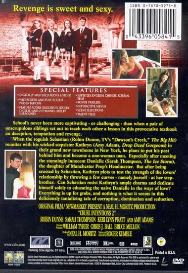 After his precocious behavior has gotten him bounced out of one more in a string of exclusive private schools, 16-year old Sebastian Valmont has arrived in New York City to live with his father and stepmother. The cunning and handsome Sebastian may have met his match, however in his equally manipulative and beautiful stepsister Kathryn Merteuil.