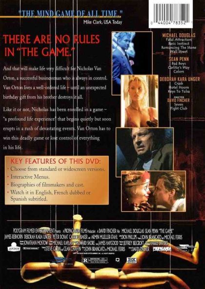 In honor of his birthday, San Francisco banker Nicholas Van Orton, a financial genius and a cold-hearted loner, receives an unusual present from his younger brother, Conrad: a gift certificate to play a unique kind of game. In nary a nanosecond, Nicholas finds himself consumed by a dangerous set of ever-changing rules, unable to distinguish where the charade ends and reality begins.
