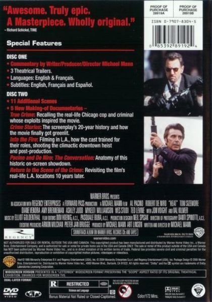 Obsessive master thief Neil McCauley leads a top-notch crew on various daring heists throughout Los Angeles while determined detective Vincent Hanna pursues him without rest. Each man recognizes and respects the ability and the dedication of the other even though they are aware their cat-and-mouse game may end in violence.