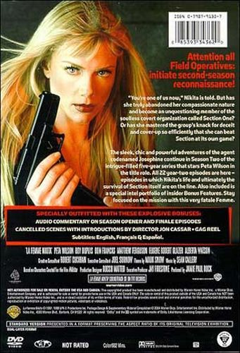 Based on the cult motion picture of the same name, the sexy, stylish spy series La Femme Nikita ran from 1997 to 2001 on the USA network. Starring Peta Wilson as Nikita, the series saw a young woman framed for murder and given a choice: be sentenced to life imprisonment, or work for Section One, a clandestine anti-terrorism organization. Nikita chose life, soon discovering that she is just the latest pawn in Section's games...