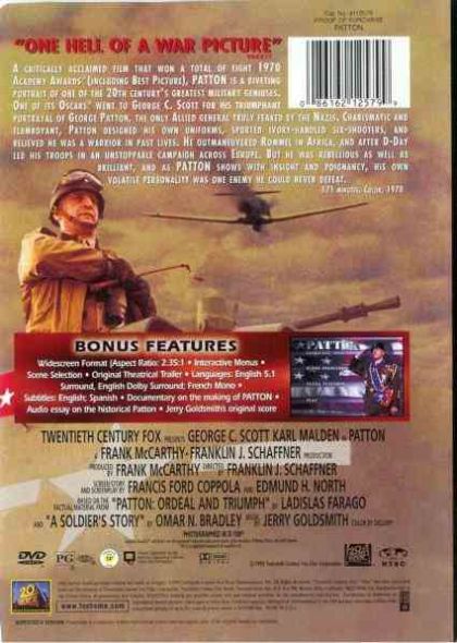 "Patton" tells the tale of General George S. Patton, famous tank commander of World War II. The film begins with Patton's career in North Africa and progresses through the invasion of Germany and the fall of the Third Reich. Side plots also speak of Patton's numerous faults such his temper and habit towards insubordination.