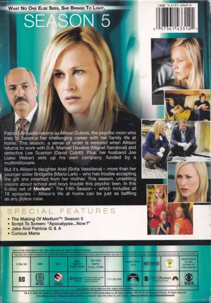 From Emmy Award-winning executive producer, creator and director Glenn Gordon Caron (Moonlighting) comes Medium, a chilling drama series inspired by the real-life story of research medium Allison Dubois. Patricia Arquette (Stigmata, Flirting with Disaster) stars as a young wife and mother who, since childhood, has been struggling to make sense of her dreams and visions of dead people. Allison DuBois (Arquette) is a strong-willed young mother of three, a devoted wife and law student who begins to suspect that she can talk to dead people, see the future in her dreams and read people's thoughts. Fearing for her mental health, she turns for support to her husband Joe (Jake Weber, "U-571"), an aerospace engineer, who slowly comes to believe that what his wife is telling him just might be true. The real challenge is convincing her boss, D.A. Devalos (Miguel Sandoval) -- and the other doubters in the criminal justice system -- that her psychic abilities can give them the upper hand