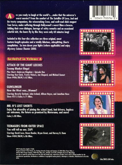 Included in this four-disc collection are three original, uncut feature-length episodes and a totally hilarious, sidesplitting Shorts compilation. So turn down your lights (where applicable) and enjoy Mystery Science Theater 3000.