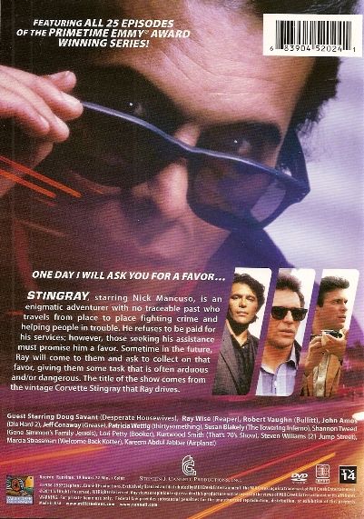 Stingray revolves around a mysterious man known only as Ray, who travels the land in a black '65 Stingray Corvette. His background is unknown. However, someone can contact him by placing a newspaper or computer ad to barter for a Stingray Corvette. He typically helps those who can't help themselves, but always asks a price: he requires that they help him out one time, sometime in the future, no questions asked. A favor for a favor. Ray has no friends but many allies and grateful customers, and only fleeting romantic relationships. He doesn't do repeat favors (although he will sometimes accept referrals from former clients). His background is unknown, although he is an expert martial artist, spy, and infiltrator.