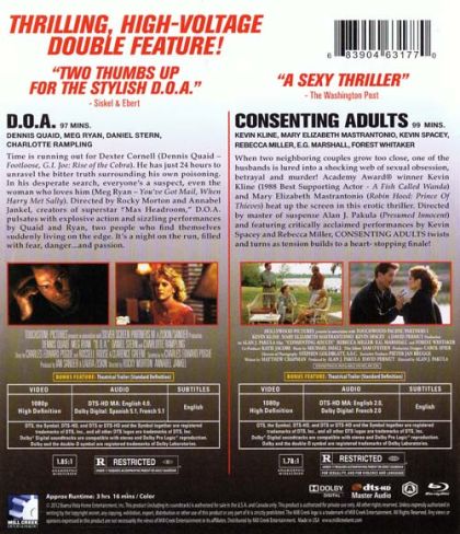 Time is running out for Dexter Cornell (Dennis Quaid – Footloose, G.I. Joe: Rise of the Cobra). He has just 24 hours to unravel the bitter truth surrounding his own poisoning. In his desperate search, everyone's a suspect, even the woman who loves him (Meg Ryan – You've Got Mail, When Harry Met Sally). Directed by Rocky Morton and Annabel Jankel, creators of superstar "Max Headroom," D.O.A. pulsates with explosive action and sizzling performances by Quaid and Ryan, two people who find themselves suddenly living on the edge. It's a night on the run, filled with fear, danger...and passion.