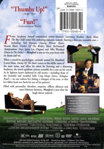 When a would-be psychologist, curiously named Dr. Mumford, comes to the idyllic town of the same name and offers his talent for listening and a disarming frankness, the town's quirkiest citizens scramble for a seat on his couch. As he lightens hearts darkened by old secrets no one realizes he's hiding a whopper of his own, or that he's fallen head over heels for one of his patients!