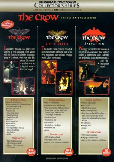 A series of movies where the lead character is murdered and then brought back to life to avenge their death. Their return to the world of the living is heralded by a crow.