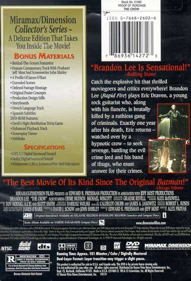 Exactly one year after young rock guitarist Eric Draven and his fiancée are brutally killed by a ruthless gang of criminals, Draven, watched over by a hypnotic crow, returns from the grave to exact revenge.