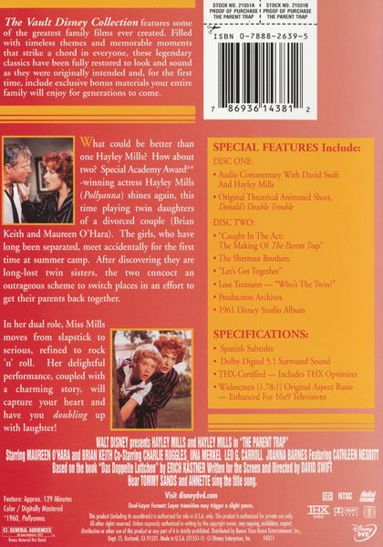 Two identical twin sisters, separated at birth by their parents' divorce, are reunited years later at a summer camp, where they scheme to bring their parents back together. The girls, one of whom has been living with their mother and the other with their father, switch places after camp and go to work on their plan, the first objective being to scare off a gold-digger pursuing their father.