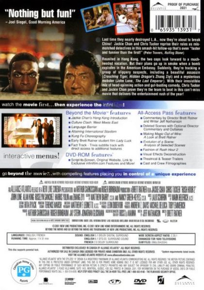 It's vacation time for Carter as he finds himself alongside Lee in Hong Kong wishing for more excitement. While Carter wants to party and meet the ladies, Lee is out to track down a Triad gang lord who may be responsible for killing two men at the American Embassy. Things get complicated as the pair stumble onto a counterfeiting plot. The boys are soon up to their necks in fist fights and life-threatening situations. A trip back to the U.S. may provide the answers about the bombing, the counterfeiting, and the true allegiance of sexy customs agent Isabella.