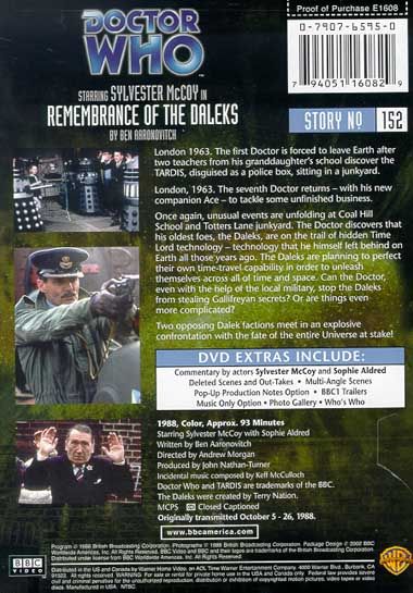 London, 1963. Returning to the scenes of his first televised adventure, the Doctor and new companion Ace play a tricky game of bluff and deceit involving two rival Dalek factions, local soldiers, and the awesomely powerful Gallifreyan artefact, the Hand of Omega...