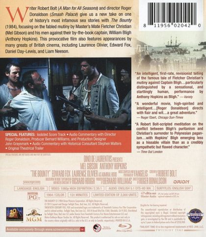 The familiar story of Lieutenant Bligh, whose cruelty leads to a mutiny on his ship. This version follows both the efforts of Fletcher Christian to get his men beyond the reach of British retribution, and the epic voyage of Lieutenant Bligh to get his loyalists safely to East Timor in a tiny lifeboat.