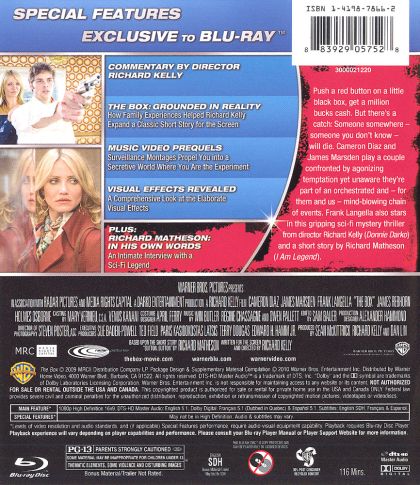 Norma and Arthur Lewis, a suburban couple with a young child, receive a simple wooden box as a gift, which bears fatal and irrevocable consequences. A mysterious stranger delivers the message that the box promises to bestow upon its owner $1 million with the press of a button. However pressing this button will simultaneously cause the death of another human being somewhere in the world; someone they don't know. With just 24 hours to have the box in their possession, Norma and Arthur find themselves in the cross-hairs of a startling moral dilemma and must face the true nature of their humanity.