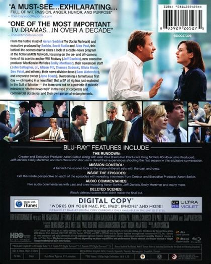 From the mind of Aaron Sorkin, creator of The West Wing and screenwriter of The Social Network and Moneyball, comes The Newsroom, a behind-the-scenes look at the people who make a nightly cable-news program. Focusing on a network anchor (played by Jeff Daniels), his new executive producer (Emily Mortimer), the newsroom staff (John Gallagher, Jr., Alison Pill, Thomas Sadoski, Olivia Munn, Dev Patel) and their boss (Sam Waterston), the series tracks their quixotic mission to do the news well in the face of corporate and commercial obstacles-not to mention their own personal entanglements.
