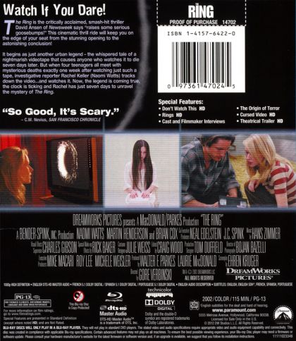 Journalist Rachel Keller investigates a strange videotape that may be behind the untimely deaths of four teenagers. There is an urban legend about this tape: the viewer will die seven days after watching it. Rachel tracks down the video... and watches it. Now she has just seven days to unravel the mystery of the Ring in order to save herself and her son.
