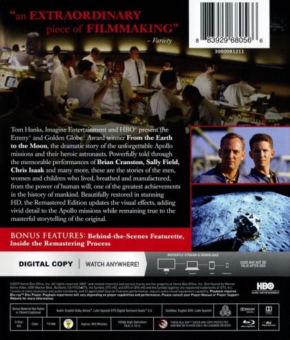 Tom Hanks, Imagine Entertainment and HBO present From the Earth to the Moon, the dramatic story of the unforgettable Apollo missions and their heroic astronauts, from President John F. Kennedy's historic speech, through the first manned expeditions into space, to the defining moment of the space program - putting a man on the moon. "One small step for man...one giant leap for mankind." Powerfully told as never before through the unforgettable performances of Cary Elwes, Sally Field, Chris Isaak and many more, these are the stories of the men, women and children who lived, breathed and manufactured from the power of human will one of the greatest achievements in the history of mankind.