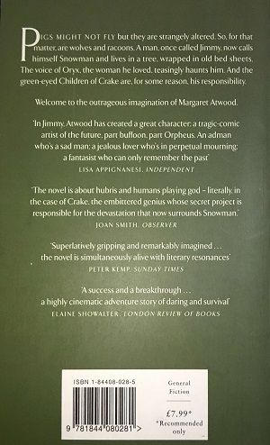 Pigs might not fly but they are strangely altered. So, for that matter, are wolves and racoons. A man, once named Jimmy, lives in a tree, wrapped in old bedsheets, now calls himself Snowman. The voice of Oryx, the woman he loved, teasingly haunts him. And the green-eyed Children of Crake are, for some reason, his responsibility. 'In Jimmy, Atwood has created a great character: a tragic-comic artist of the future, part buffoon, part Orpheus. An adman who's a sad man; a jealous lover who's in perpetual mourning; a fantasist who can only remember the past' - Independent'Gripping and remarkably imagined' - London Review of Books