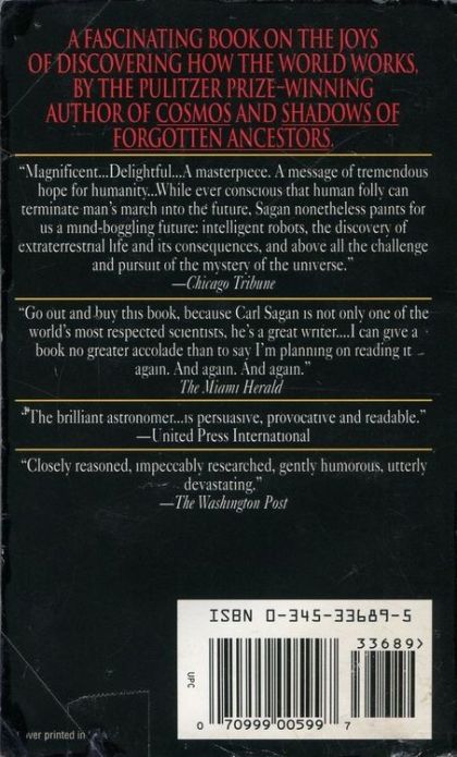 A fascinating book on the joys of discovering how the world works, by the Pulitzer Prize–winning author of Cosmos and Shadows of Forgotten Ancestors.“Magnificent . . . Delightful . . . A masterpiece. A message of tremendous hope for humanity . . . While ever conscious that human folly can terminate man’s march into the future, Sagan nonetheless paints for us a mind-boggling future: intelligent robots, the discovery of extraterrestrial life and its consequences, and above all the challenge and pursuit of the mystery of the universe.”—Chicago Tribune“Go out and buy this book, because Carl Sagan is not only one of the world’s most respected scientists, he’s a great writer. . . . I can give a book no greater accolade than to say I’m planning on reading it again. And again. And again.”—The Miami Herald“The brilliant astronomer . . . is persuasive, provocative and readable.”—United Press International“Closely reasoned, impeccably researched, gently humorous, utterly devastating.”—The Washington Post
