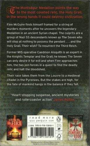 The Montségur Medallion points the way to the most coveted relic, the Holy Grail. In the wrong hands it could destroy civilisation. Finn McGuire finds himself framed for a string of murders moments after he uncovers the legendary Medallion in an ancient Syrian chapel. The culprits are a group of Nazi SS descendents known as The Seven who will stop at nothing to possess the pendant . . . and the Holy Grail. Their wish? To resurrect the Third Reich. Former MI5 operative Caedmon Aisquith is an expert in the Knights Templar and the Grail; he knows the Seven can only desire it for evil and when Finn approaches him, the two join forces in a quest to find the deadly relic and halt the bloodshed. Their race takes them from the Louvre to a medieval citadel in the Pyrenees. But the stakes are high for the fate of mankind hangs in the balance if they fail. 'Heart-stopping suspense, ancient mysteries and rollercoaster action' James Rollins