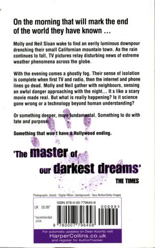 On the morning that will mark the end of the world they have known, Molly and Niel Sloan awaken to the drumbeat of rain on their roof. It has haunted their sleep, invaded their dreams, and now they rise to find a luminous silvery downpour drenching their small California mountain town. A strange scent hangs faintly in the air, and the young couple cannot shake the sense of something wrong.