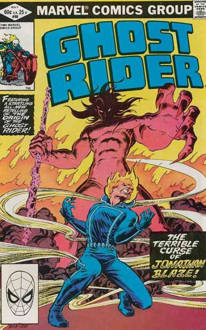 A terrible storm rages. Inside a church, Johnny asks the priest to hear his confession. He explains his life - how his father died, and how Crash and Mona Simpson raised him. How Mona died, and on her deathbed extracted a promise that Johnny quit the dangerous stunt riding game. How Johnny couldn't keep that promise, and how he and Roxanne fell in love. How Crash Simpson became ill and Johnny made a deal with Mephisto to save him from the disease. Crash didn't die of cancer, but he did die riding. And Mephisto came to claim Johnny. Only Roxanne's pure love drove the demon away. But he got his: Johnny found himself bound to a demon, who emerged and created Ghost Rider! And the last part of the story is how Johnny came across a man left for dead in a ditch... a priest waylaid, his clothing stolen by his murderer. Ghost Rider emerges, a skeletal hand shattering the confessional lattice! The thief escapes, stealing Johnny's bike, but Ghost Rider does not need Johnny's bike. He chases down the murderer, cross country and along roads, finally seizing him near the railroad tracks. The next day rescue workers load a man into an ambulance, his mouth gaping as if to scream, and as if he'd run out of screams. And Johnny Blaze rides away...
