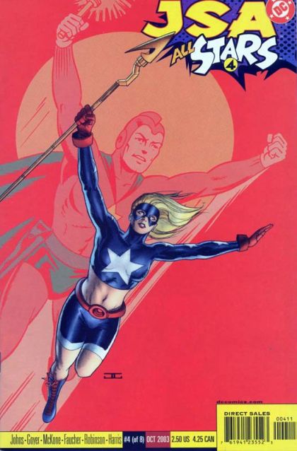 WRITTEN BY GEOFF JOHNS, DAVID S. GOYER AND JAMES ROBINSON; ART BY MIKE MCKONE, WAYNE FAUCHER AND TONY HARRIS; COVER BY JOHN CASSADAY AND MARK LEWIS In stores August 6. Spotlighting the spectacular Stargirl! The Star-Spangled Kid enlists the aid of her partner and stepfather, S.T.R.I.P.E., as she heads out on a hunt for the one person she'd rather forget: her biological father. Plus, a backup Golden Age Starman tale by the team of James Robinson & Tony Harris (STARMAN)! FC, 32 PG. (4 OF 8) $2.50 Cover price $2.50.