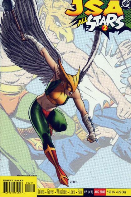 WRITTEN BY DAVID S. GOYER, GEOFF JOHNS AND JEPH LOEB; ART BY PHIL WINSLADE AND TIM SALE; COVER BY JOHN CASSADAY In stores June 4. Featuring a solo Hawkgirl adventure plus a Golden Age Hawkman tale by Jeph Loeb and Tim Sale! Hawkgirl takes flight to meet her grandfather, the adventurer known as Speed Saunders. And although she'll have a helluva time getting him out of his current situation, it's Kendra's past that will take the biggest toll on her, as we learn the one thing she won't share with Hawkman ? or the rest of the JSA. And in the backup, the all- star team of Loeb and Sale take on the Golden Age Hawkman! FC, 32 PG. (2 OF 8) $2.50 Cover price $2.50.