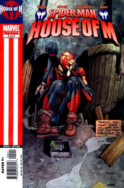 Humanity's existence under the reign of the House of M is bleak. The Parker family prospered because for years the world thought that Spider-Man must be a mutant. Now, exposed as a human, Peter Parker has lost everything. Wrought with guilt at having passed as a mutant when so many suffer, Peter suffered a psychotic break, leading to the 'Green Goblin' who presented Peter's journal to Jameson.