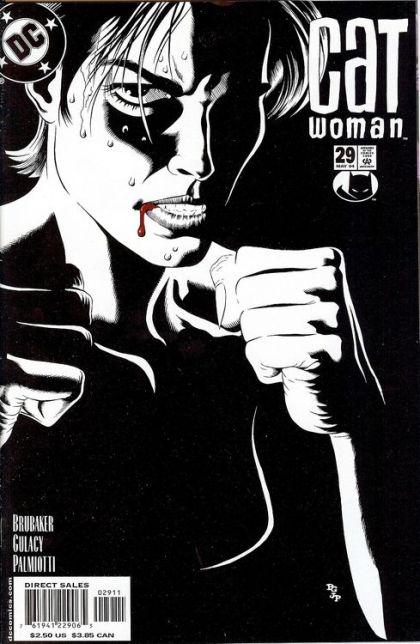 Selina is concerned that she is losing the East End because she can't handle Zeiss. So she trains with Wildcat, but he believes she's faster than ever. He also believes she can't get out of her own way, and until she solves that problem she won't be able to handle Zeiss. Leslie remonstrates with her for putting a child in danger, something Leslie dislikes about Batman's approach, too - she'd hoped for better from Selina. Slam speaks to his son, who reports that a witness identified Zeiss's first victim as a man who looked exactly like Slam. Was Slam there? He won't say, and they argue. Wildcat, Selina and Holly break for some food, and on the way Wildcat spots two Beti-Ma cultists. Selina confronts them, and they bow to her before escaping! Holly is very unhappy that Selina did not share this encounter, as these cultists could perhaps threaten Selina's friends, too. Selina shares the story, and Holly leaves angry, worried for Karon. Later, Selina returns home. She finds a note from Batman saying he'll find her later; they need to talk. She also finds a drunk Slam Bradley, who accuses her of using him. He's angry because working with Selina is forcing him to lie to his son and corroding their relationship. She leaves angry, and on a rooftop sees the shadow of a cape. Here's Batman to offer his lecture, but she's had enough for one day and she tells him so. That means, says Zeiss, that his timing is right on the money...