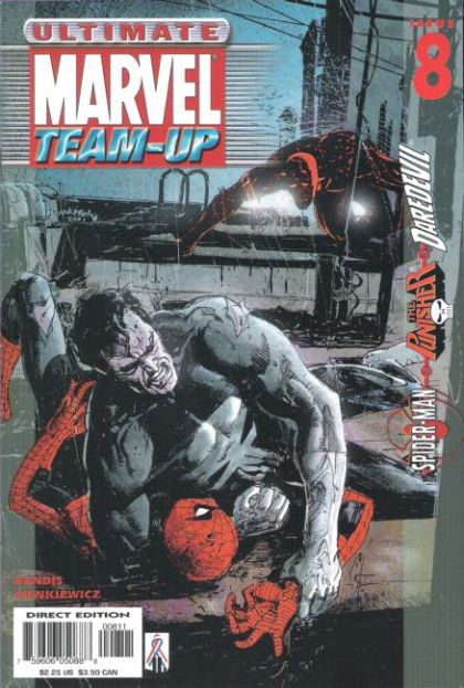 Daredevil tries to talk Punisher down, but can't do it before the police come to investigate. One of the police officers who arrives on the scene is the man in charge of the corruption in Frank Castle's old unit, and he comes close enough to Daredevil to be tracked. Daredevil does so, just before the Punisher kills him. Before he can talk Castle into turning the man over to police, Spider-Man jumps in with too little information and botches things up. Daredevil hunts after the murderer, while Spider-Man turns Castle over to the police. Both men are incarcerated, and find themselves in the same prison cell.