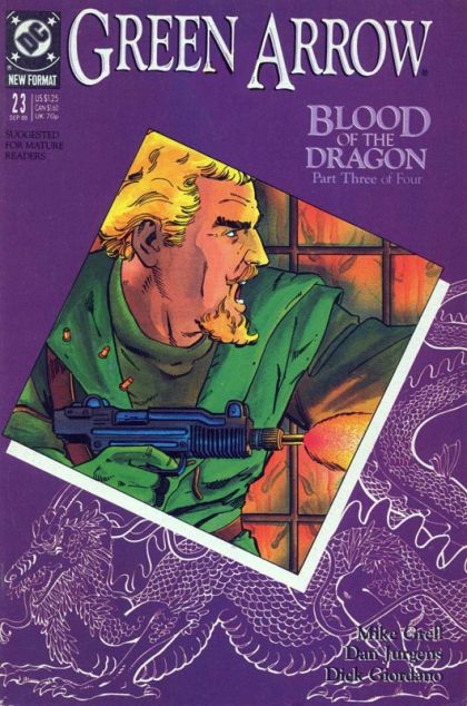 Part 3 of the 4-part "Blood of the Dragon": Green Arrow and Shado risk an all-out assault on the Yakuza headquarters in Tokyo to rescue her child. Written by Mike Grell, with art by Dan Jurgens, Dick Giordano and Frank McLaughlin. Cover by Jurgens and Giordano. Suggested for Mature Readers. New Format. Cover price $1.25.