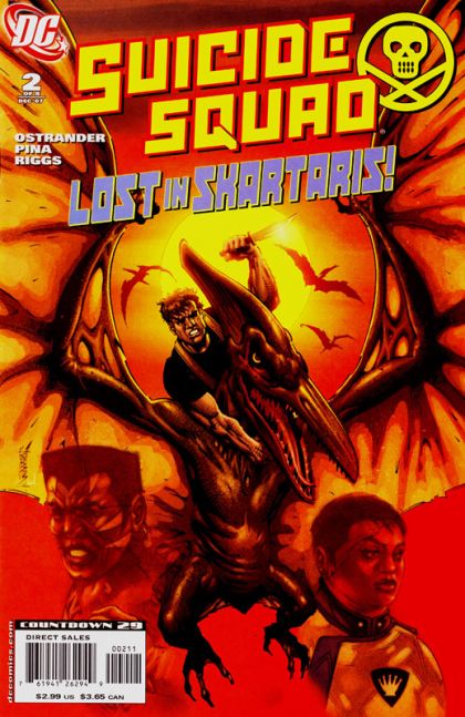 Rick Flag wakes in what turns out to be Skataris and narrowly avoids being killed by a velociraptor. Trapped by the corpse of the dinosaur, he remembers fighting Rustam in Jotunheim as a bomb was about to go off. Rustam used a magical scimitar to tear a hole in space and time through which both he and Flag escaped.Rustam appears and uses the scimitar to free Flag from the dead dinosaur, the pair of them agreeing that until they can escape, they should work together. Amanda Waller, meanwhile, finds evidence that General Eiling knew the Suicide Squad's mission to Russia was pointless but cannot prove that he knew it before they left.In Skataris, Rustam saves Flag from a pterodactyl though during the encounter, Flag is able to weild the magical scimitar. They press on through the jungle until they find the abandoned ruins of a temple or palace.
