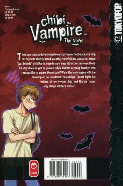 The supernatural-love-comedy-mystery novel continues starring our favorite clumsy blood injector, Karin!Kenta wants to remain "just friends" with Karin despite a strange attraction between them. So why does he get so jealous when Hidemi, a young teacher who rescues Karin, enters the picture? While Karin struggles with the meaning of her newfound "friendship," Kenta fights his feelings of envy--and Anju and Karin's father only make matters worse!